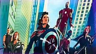 Na ujęciu widać szóstkę superbohaterów. Choć grafika jest niewyraźna, to można ich rozpoznać. Choć w większości trudno powiedzieć, z jakimi wersjami mamy do czynienia, to jedna postać wydaje się zupełnie inna, niż w pozostałych filmach i serialach MCU.