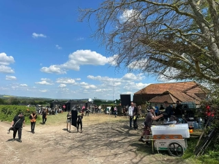 Zdjęcia zostały zrobione w pobliżu Midhurst w West Sussex. Na planie obecny był także Liam Hemsworth, ale producenci szybko go ukryli, zanim fotograf zdołał zrobić mu zdjęcie. Możemy jednak zobaczyć ujęcie z zakończonej sceny walki, na co wskazuje ubrudzony krwią miecz Geralta. Sama scena ma przedstawiać łowcę potworów walczącego z bandytami, a jednemu z nich wiedźmin poderżnie gardło.
