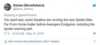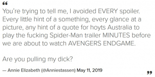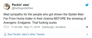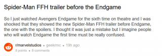 Nowy film o Spider-Manie rozegra się po wydarzeniach z Avengers: Endgame, a w oficjalnym zwiastunie sam Tom Holland wygłasza krótkie przemówienie mówiące o tym, by ci, którzy jeszcze nie widzieli filmu, natychmiast wyłączyli wideo - klip bowiem wyraźnie sugeruje kluczowe wydarzenia z ostatniej części Avengers. Widzowie, którzy mieli nieprzyjemność zobaczyć zwiastun przed swoim pierwszym seansem wspomnianego filmu, mogli czuć się nie tylko zdezorientowani, ale i załamani, ponieważ wprost pokazano im, jakie będą konsekwencje wydarzeń, które dopiero mają zobaczyć.