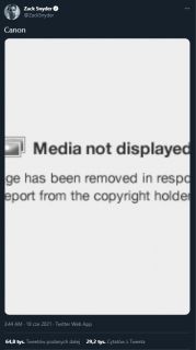Zack Snyder, reżyser Justice League, postanowił przedstawić swoją opinię na ten temat w bardzo dosadny sposób. Mianowicie podzielił się na Twitterze rysunkiem NSFW - czyli takim, który zawiera treści wulgarne lub erotyczne - Batmana, który zadowala oralnie Selinę Kyle. Podpisał to jednym słowem: kanon. Nie jest pewne, skąd pochodzi ilustracja, wiemy natomiast, że Warner Bros. nie spodobał się ten ruch. Obraz został zdjęty z platformy na podstawie praw autorskich. Snyder skomentował sytuację zrzutem ekranu Tweeta z podpisem: Jeśli pójdę naprzód.