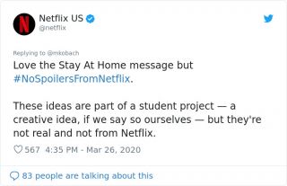 Netflix skomentował fałszywą kampanię na Twitterze, chwaląc ideę i kreatywny pomysł, ale podkreślając, do kogo należy autorstwo.