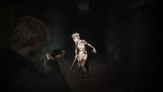 Nic więc dziwnego, że mgła powróciła również w drugiej części, a razem z nią duża dawka mroku. Zarówno tego fabularnego, związanego z pokruszoną psychiką głównego bohatera, Jamesa Sunderlanda, jak i w pełni dosłownego. Silent Hill 2 to gra, w której dominują szarości i czerń. Lokacje są skąpane w ciemności, co potęguje uczucie zaszczucia i paranoi. Co więcej, nie ma tutaj praktycznie żadnych żartów czy one-linerów, które mogłyby dawać nam moment odpoczynku. Czujemy się zagubieni, przytłoczeni. Nigdy nie możemy być pewni tego, co kryje się w rogu ekranu. Świetnie pasuje do tego statyczna kamera, dzięki której widzieliśmy tylko to, co mieliśmy w danym momencie zobaczyć. Mamy wrażenie, że na każdym kroku czyha na nas jakiś jumpscare, który skutecznie podniesie nam ciśnienie i sprawi, że w nocy będziemy mieli problemy z zaśnięciem.