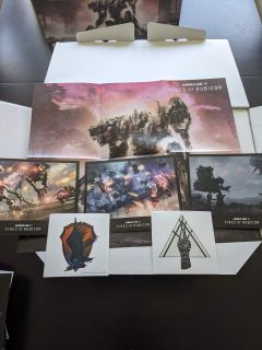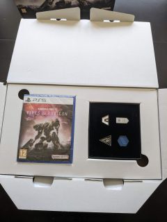 W skład tego zestawu, poza samą grą na wybraną platformę, wchodzi również artbook, steelbook, cyfrowa ścieżka dźwiękowa (w formie kodu do pobrania), trzy arkusze z naklejkami, pocztówki, plakat oraz cztery przypinki reprezentujące obecne w grze frakcje i korporacje. Bez wątpienia największą atrakcją jest jednak co innego: wysoka na 19 centymetrów figurka mecha, tytułowego AC. Podobnie jak w produkcji autorstwa From Software, tak i w tym przypadku możemy ją nieco zmodyfikować. W pudełku znalazły się bowiem cztery bronie, które możemy umieścić w dłoniach i na plecach maszyny, a także dodatkowa, wymienna głowa. Ostatnim z elementów jest podstawka, na której możemy stabilnie postawić gotowego, poskładanego robota.
