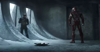 fot. Marvel StudiosTo produkcja z sercem równie wielkim, co bicepsy Chrisa Evansa. To serce ma dwie główne komory – jedną na relację Steve'a z Peggy, a drugą na relację z Buckym. Są one różne, ale równie mocno uderzające i wzruszające. Pierwsze starcie miało też jedno z najlepszych zakończeń. Może powinienem napisać: "podwójnych zakończeń". Poświęcenie Kapitana Ameryki – czyli hibernacja na wiele dekad, a później przebudzenie w świecie, w którym niemal wszyscy jego bliscy już nie żyli lub znajdowali się na skraju śmierci – mocno wbijało w fotel za sprawą emocji. Z kolei "drugie zakończenie" jest tym, które w pełni wprowadziło Steve'a Rogersa do świata przyszłych Avengers. Ot, nasz bohater budzi się w na pozór normalnym szpitalu, by odkryć, że wszystko to jest w rzeczywistości fałszem i obłudą, a on sam znalazł się w innych czasach. Ostatnie zdanie wypowiedziane przez Rogersa po spotkaniu Nicka Fury'ego do dziś potrafi poruszyć.