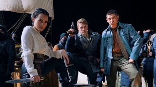 Oczywiście jeszcze większe podekscytowanie wzbudzał we mnie potencjalny spin-off o ikonicznej Szóstce Wron. Mówiło się o tym od premiery 2. sezonu. Teraz wiadomo, że scenarzyści faktycznie pracowali nad takowym projektem. Można było się tego spodziewać po narracji Kaza Brekkera, który opowiadał o wyjątkowej ofercie pracy i nowym narkotyku zażywanym przez Grisze, zwanym jurda parem. Z pewnością wywołało to zjawisko fangirlingu u niejednego czytelnika – ów narkotyk był istotny dla wydarzeń z dylogii Bardugo. Słowa Brudnorękiego oznaczały jedno... Napad na Lodowy Dwór był coraz bliższy realizacji. To skutkowałoby wyjściem Matthiasa z więzienia (nareszcie) i ponownym spotkaniem z Niną. Z pewnością wróciłaby także Inej, która wyruszyła w morze, aby odnaleźć swoją rodzinę. W końcu gang Wron byłby kompletny, na co widzowie czekali od samego początku. Gdyby słynna Szóstka stanęła obok siebie w jednym pomieszczeniu, fani byliby podekscytowani – tak jak na widok trzech Spider-Manów w Spider-Man: Bez drogi do domu. Ta myśl pozostawia mnie z gorzkim rozczarowaniem.