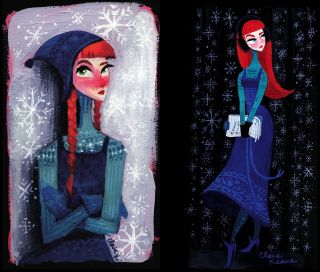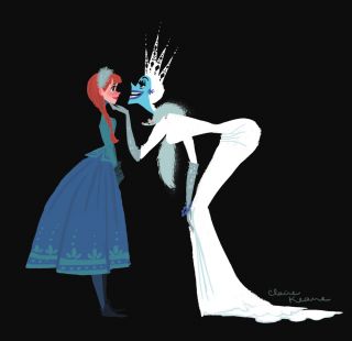 Nie tylko ilustracje do Zaplątanych wzbudzają ciekawość. Artystka pracowała także nad Krainą lodu - ogromnym hitem Disneya, przez który ludzie na całym świecie musieli tygodniami wysłuchiwać różnych wersji Let It Go. Wizerunek Elsy można było znaleźć wszędzie, a dzieci pokochały ją całym sercem. I choć to niezaprzeczalny sukces, to z grafik koncepcyjnych wyłania się inna i równie interesująca wersja królowej. Wygląda na to, że na wstępnym etapie rozważano, by była niebieska, a jej ciało miało figurę zbliżoną do klepsydry. Trzeba przyznać, że na poniższych ilustracjach Elsa wypada niezwykle charyzmatycznie i prezentuje się bardzo świeżo.