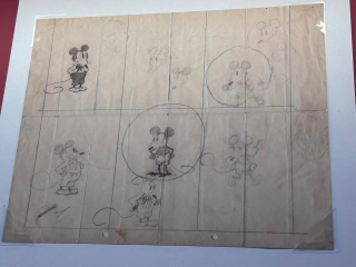 Zaczniemy od szkicu ołówkiem do plakatu Sleigh Bells z 1928 roku z królikiem Oswaldem. Zaraz obok będzie strona z ilustrowanego scenariusza do Parowca Williego, a także historycznie pierwszy rysunek myszek Mickey i Minnie! W kolejnej sali można zobaczyć rysunkowe wprawki do projektu postaci Pinokia z 1940 roku i wstępne storyboardy z Kopciuszka z 1950 roku.