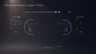 Największym game-changerem, przynajmniej dla mnie, okazały się profile użytkownika, które możemy tworzyć na konsoli, a następnie przypisywać je do czterech skrótów wywoływanych jednym z dwóch przycisków znajdujących się u dołu kontrolera. W prosty sposób możemy zmieniać przypisane przyciski, ustawiać wspomnianą już czułość i martwą strefę drążków, martwą strefę spustów czy siłę wibracji. Później można przełączać się między takimi profilami "w locie", bez potrzeby minimalizowania gry. To świetne rozwiązanie szczególnie w przypadku tytułów oferujących zróżnicowaną rozgrywkę: możecie zdecydować się na różne ustawienia w zależności od konkretnych trybów zabawy czy aktywności.
