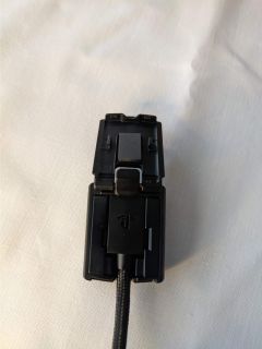 Gniazdo ładowania zawiera po bokach dwa dodatkowe otwory. To miejsce, w którym zaczepia się blokadę przewodu USB-C, która uniemożliwia (a przynajmniej bardzo utrudnia, bo pewnie znajdą się odważni, którzy zechcą przetestować wytrzymałość tego elementu) wypięcie kabla. Długość przewodu liczy 2,8 metra, więc granie "na kablu" jest dość wygodne. A warto dodać, że dla wielu osób jest to preferowany sposób zabawy z uwagi na eliminację opóźnień wynikających z komunikacji bezprzewodowej.