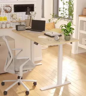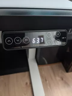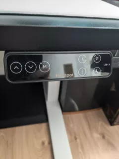 A skoro już przy tym jesteśmy, to pora przejść do głównej atrakcji, czyli właśnie regulacji wysokości. Dokonuje się jej, korzystając z bardzo prostego w obsłudze panelu kontrolnego, który, w zależności od naszych preferencji, możemy umieścić na froncie po prawej lub lewej stronie. Ma on zaledwie kilka przycisków, którymi możemy płynnie zmieniać wysokość w górę lub w dół oraz zapisywać ją na jednym z czterech ustawień (opisanych cyframi 1 i 2 oraz ikonkami przedstawiającymi stojącego i siedzącego człowieka). Z boku znalazło się jeszcze miejsce dla portu USB, co osobiście bardzo mnie ucieszyło. Dzięki temu mogę awaryjnie podładować mysz, telefon czy słuchawki bez potrzeby ruszania się z miejsca.