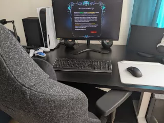 Po umieszczeniu FlexiSpot E7 Pro w miejscu mojego poprzedniego biurka, w oczy od razu rzuciła się zauważalnie większa przestrzeń robocza. Oczywiście spodziewałem się, że przeskok z blatu o wymiarach 120 x 60 cm na 140 x 80 cm będzie odczuwalny, ale nie sądziłem, że aż w takim stopniu. Po przeniesieniu wszystkich sprzętów, w tym dwóch monitorów, głośników, klawiatury, myszy oraz konsol PlayStation 5 iXbox Series X wraz z kontrolerami nadal zostało mi sporo miejsca. Wreszcie nie muszę zastanawiać się, gdzie mam odłożyć słuchawki czy postawić kubek z poranną kawą. Deklarowana przez producenta nośność na poziomie 160 kilogramów zabezpiecza mnie również na przyszłość, gdybym planował postawić tu coś więcej. Nawet rozważając w głowie totalnie absurdalne scenariusze w stylu trzech monitorów, PC czy wszystkich konsol obecnej generacji trudno jest mi wyobrazić sobie dobicie do 100 kg, nie mówiąc już o osiągnięciu maksymalnego limitu.