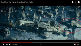 Scena grupowa przy statku jest jedną z bardziej intrygujących i gdyby nie za bardzo oddalona kamera, najpewniej odkrylibyśmy więcej ciekawostek. Rzuca jednak w oczy postać przedstawiciela rasy Kalamarian z planety Mon Calamari. Na pierwszy rzut oka wskazuje na to, że oto patrzymy na Aftaba Ackbara, syna legendarnego Ackbara znanego z klasycznego "to pułapka!" z Powrotu Jedi, który zginął w Ostatnim Jedi. Młody Ackbar pojawił się w komiksie Allegiance Marvela rozgrywającym się przed wydarzeniami z filmu - tam bohaterowie udali się na jego planety, by przekonać jego ziomków oraz Quarrenów do dalszej walki po stronie dobra.