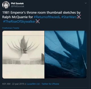 Poza dialogami Iana McDiarmida widzimy parę kluczowych momentów. Po pierwsze - nowy tron, który jest tak naprawdę "starym" , ponieważ jak ogłosił Phil Szostak z Lucasfilmu, jest to projekt stworzony na potrzeby Powrotu Jedi przez legendarnego Ralpha McQuarrie'ego, który zdecydowano się tutaj wykorzystać.