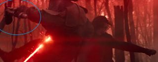 Scena w lesie zwiastuje nam jakiś konflikt. Oglądając ją klatka po klatce widzimy jednak, że walka Kylo Rena i jego szturmowców nie toczy się z Ruchem Oporu. Ich przeciwnikami są tajemnicze istoty w płaszczach z kapturami na głowie i z bardzo prymitywną bronią, przypominającą fikuśne toporki. Notabene fani wrestlingu szybko dostrzegli, że Kylo Ren wykorzystuje wizytówkę samego Dwayne'a Johnsona, czyli cios zwany Rock Bottom. Nie sądzę, by te postacie były Rycerzami Ren, ponieważ wyglądają zwyczajnie i giną w oka mgnieniu. Czuć jednak w dynamice starcia, że to oni czegoś bronią... Trudno tak naprawdę cokolwiek więcej wywnioskować z tej sceny.