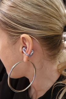 K: Do tego są bardzo lekkie, co dla uszu przystrojonych kolczykami nie jest bez znaczenia: moja biżuteria z reguły sporo waży. Jestem fanką dużych form, czy to kolczyków czy klipsów, a dodatkowe gramy na uszach są zawsze obciążeniem. Huawei FreeClip są praktycznie niewyczuwalne na małżowinie i nie dociążają wagi już i tak obficie „ubranych” uszu. Ciężka biżuteria powoduje też to, że ucho pracuje podczas poruszania głową. Wówczas rusza się też kolczyk, a wraz z nim całe ucho i znajdujące się wewnątrz słuchawki dokanałowe, przez co musiałam je często poprawiać. Przy Huawei FreeClip problem po prostu zniknął! Nie musiałam nic dociskać, bo słuchawka trzyma się ucha bez względu na wagę moich kolczyków.