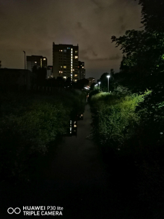 Huawei P30 lite w trybie standardowym z włączoną sztuczną inteligencją po prostu zwiększa czułość matrycy, aby uchwycić więcej światła, a zdjęcia ostrzy równie szybko co za dnia. Za to po aktywowaniu trybu nocnego, aparat naświetla fotografię w kilku fazach, cały proces trwa ok. 5 sekund. W tym czasie musimy utrzymać aparat nieruchomo, aby zdjęcia dobrze się wyostrzyły.
