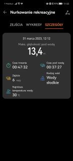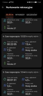 Szczegółowy dziennik w aplikacji Zdrowie rejestruje krzywą nurkowania, prędkość wynurzania, temperaturę wody i wiele więcej, ułatwiając planowanie i analizę podwodnych wypraw.