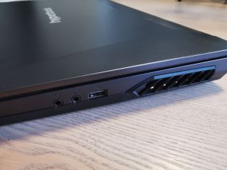 Niestety, w takich warunkach możemy zapomnieć o komfortowej pracy bez słuchawek. Wentylatory pracują wówczas z głośnością 75-80 decybeli, przez co Hyperbooka słychać w całym mieszkaniu; Roomba robi wokół siebie mniej szumu niż ten komputer. A kiedy porządnie obciążymy laptopa, włączając wymagające gry bądź uruchamiając gogle VR, robi się jeszcze goręcej. Na szczęście obudowę skonstruowano w taki sposób, że nie nagrzewa się nadmiernie od strony klawiatury, a ciepło odprowadzane jest głównie za pośrednictwem bocznych szczelin wentylacyjnych.
