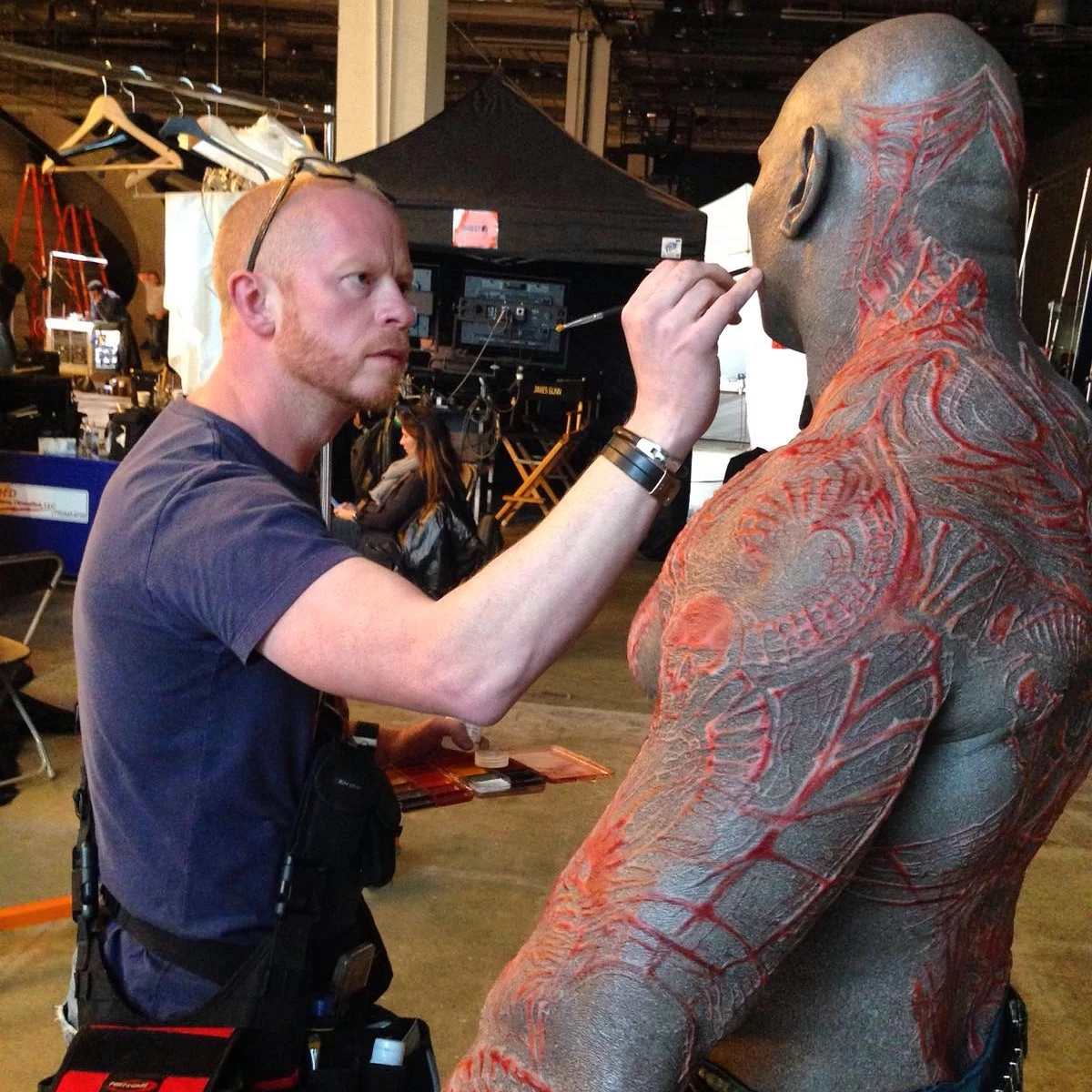 To naprawdę zależy. Na przykład przy pierwszej części Strażników Galaktyki charakteryzacja Draxa zajmowała cztery godziny, a pracowały nad nią cztery osoby jednocześnie. Do trzeciej części udało nam się skrócić ten proces do półtorej godziny, bo zmieniliśmy technikę.