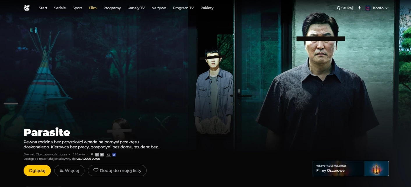 fot. naEKRANIE.plDla kinomaniaka wykupienie pakietu oznacza dostęp do bogatej biblioteki filmowej VOD i takich tytułów, jak choćby Diuna z 1984 w reżyserii legendarnego Davida Lyncha, niesławna Bitwa o Ziemię z Johnem Travoltą, Nikt, Zjawa z oskarową rolą Leonardo DiCaprio, Wyścig z czasem, oskarowy Parasite, Chappie, Donnie Brasco, Gangi Nowego Jorku, Conan Barbarzyńca... Do tego szereg kanałów filmowych takich jak SciFi, Cinemax, Sundance TV, AXN, Warner TV, Paramount Network, Kino TV czy Polsat Film). To nie są statyczne biblioteki, ale kanały linearne, które znamy z kablówki, tyle że dostępne w streamingu. Do tego dochodzi biblioteka VOD zewnętrznych dostawców i przedpremierowe odcinki seriali Polsatu. Jeśli więc po seansie Balleriny wciąż czujesz niedosyt, płynne przejście do klasyków kina jest kwestią kilku kliknięć.