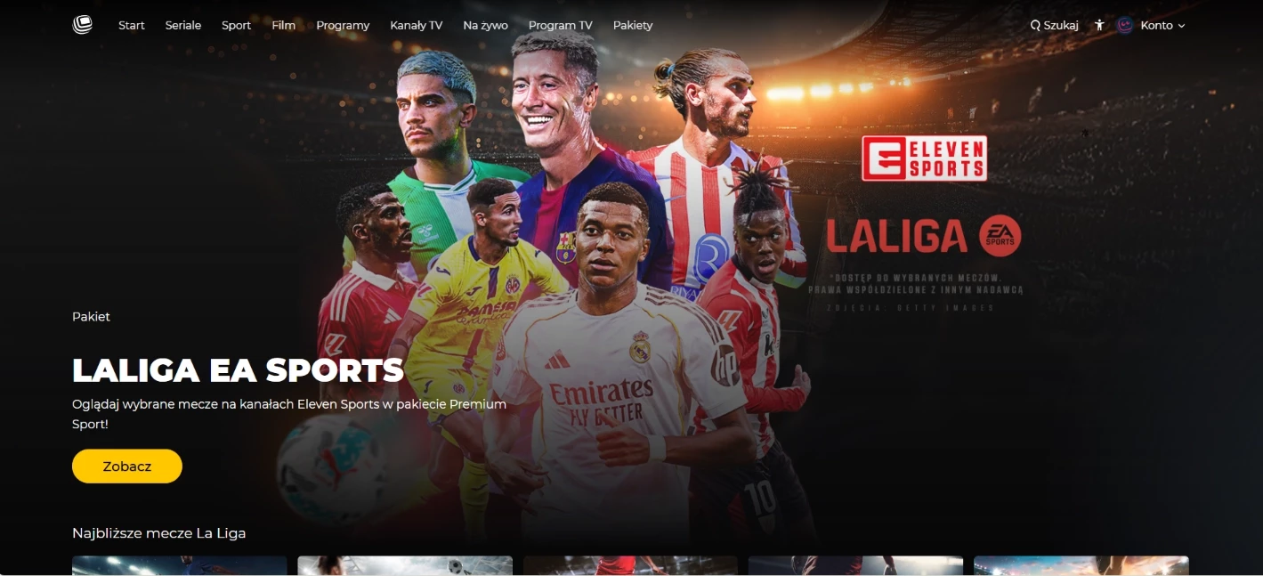 fot. naEKRANIE.plPiłka nożna: fani futbolu dostają tu Ligę Europy UEFA i Ligę Konferencji UEFA, hiszpańską LaLigę EA SPORTS, włoską Serie A, francuską Ligue 1 McDonald’s oraz niemiecką Bundesligę (dzięki współpracy z Eleven Sports).