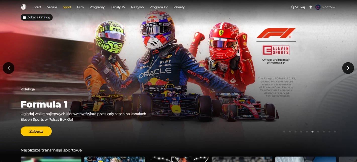 Co to oznacza w praktyce? Że w jednej usłudze mamy skumulowane prawa do transmisji, które zazwyczaj są rozbite na kilka abonamentów. Podczas naszych testów mogliśmy swobodnie przeskakiwać między dyscyplinami.