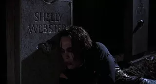 Nie da się ukryć, że historia przedstawiona w Kruku jest prosta. Dla niektórych jest to dowód, że nie jest to wybitny film, z czym się nie zgadzam. Tak, sama opowieść jest nieskomplikowana, ma wyraźnie zaznaczony początek i koniec, a w międzyczasie nie pojawiają się żadne wielkie ani zaskakujące zwroty akcji. W skrócie: Eriv Draven powstaje z martwych, by zemścić się za to, co gangsterzy zrobili jego ukochanej, wykańcza każdego z nich po kolei, a na końcu musi zmierzyć się z ich szefem, który – choć nie brał udziału bezpośrednio w napadzie – wszystko zorganizował. Sęk w tym, że ta prosta historia jest tylko płótnem, a samym obrazem są emocje, które przeżywa bohater, jego podróż wewnętrzna od momentu, w którym przypomina sobie o tragicznej śmierci ukochanej, przez zemstę, aż po błogi powrót na ziemię, a więc i do Shelly.