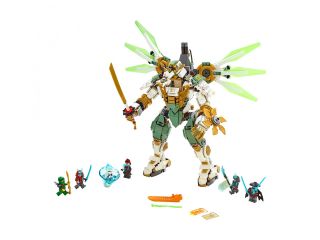 - LEGO NINJAGO - Mechaniczny tytan Lloyda - Niezwykle ruchomy zabawkowy robot dla dzieci wyposażony jest w kokpit na minifigurkę, chwytną dłoń trzymającą ogromną katanę oraz obrotowe ostrze w kształcie szurikena, którego można używać również jako tarczy. Dodatkowo robot ma odczepianą lotnię z siedzeniem dla minifigurki, ruchomymi skrzydłami i dwoma sprężynowymi działkami.