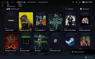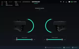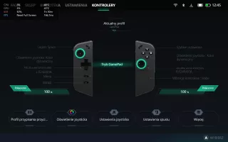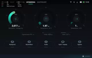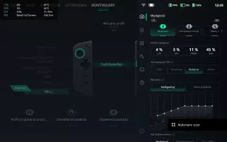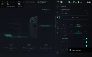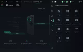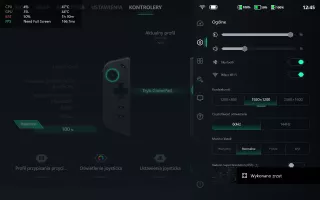Oprócz tego, korzystając z drugiego przycisku funkcyjnego, umieszczonego na prawym kontrolerze, możemy otworzyć boczny panel z szybkimi opcjami. Z jego poziomu zmienimy rozdzielczość, plan zasilania, a także skorzystamy ze skrótów klawiaturowych i umieścimy na ekranie informacje dotyczące liczby klatek na sekundę, temperatury czy stanu baterii.