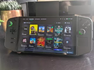 W centralnej części w oczy natychmiast rzuca się wielki (jak na standardy handheldów) wyświetlacz o przekątnej 8,8 cala. Producent zadbał nie tylko o spory rozmiar, ale też o imponującą rozdzielczość, odświeżanie i maksymalną jasność (wynoszące odpowiednio: 1600p, 144 Hz i 500 nitów). Jakość wyświetlanego obrazu jest bardzo dobra, choć nie jest to oczywiście poziom ekranów OLED. Warto natomiast zaznaczyć, że choć 1600p i 144 Hz działają na wyobraźnię, to o zabawie w takiej rozdzielczości i ponad 100 klatkach na sekundę w nowszych i bardziej wymagających tytułach można zapomnieć. Takie wyniki są do osiągnięcia w starszych i mniej "intensywnych wizualnie" tytułach, ale i tam nie zawsze ma to sens, bo wiąże się z krótszym czasem pracy na baterii. Pojemność 49,2 Wh na papierze jawi się całkiem przyzwoicie, ale w praktyce przy bardziej wymagających zastosowaniach da się wykorzystać ją w około 1,5 – 2 godziny. Na szczęście ładowanie jest szybkie i bezproblemowe, a kabel możemy podłączyć zarówno z dołu, jak i z góry – to pomocne zwłaszcza przy korzystaniu z trybu tabletop.