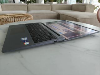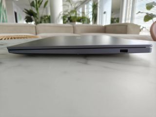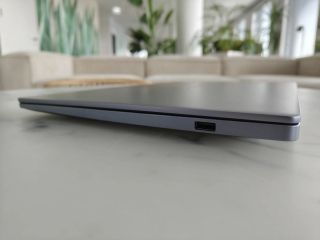 W kwestii wyświetlacza nic się nie zmieniło, gdyż Huawei zachował bardzo dobry panel z poprzedniego modelu, który teraz jest nieco lepszy dzięki pewnej zmienności produkcji. Oferuje on rozdzielczość 1920 x 1200 pikseli (wygodne proporcje 16:10) przy przekątnej 16 cali. Dzięki maksymalnej jasności 350 cd/m² i matowemu wykończeniu może być używany w jasnym otoczeniu. Ekran o szerokim kącie widzenia odwzorowuje naturalne kolory, pokrywając 98% spektrum kolorów sRGB. Zawias ekranu można otworzyć do 180 stopni. Obudowa nadal wykonana jest z niebieskawego aluminium i jest bardzo solidna, a jednocześnie całość jest lekka (1,7 kg). Zasilacz można z łatwością schować do plecaka, ponieważ waży tylko 200 gramów i jest niewiele większy od ładowarki telefonu.