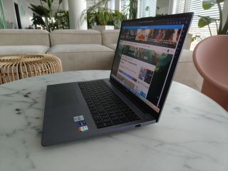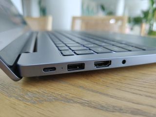 Maszyna jest wyposażona w 16 gigabajtów pamięci RAM i dysk SSD o pojemności 1 terabajta. Pod tym względem jest więc dobrze wyposażona. Nieco gorzej jest, jeśli chodzi o łączność. Dostępne są w sumie trzy porty USB. Port USB-C oferuje transfer danych 5 GBit/s i może również przekazywać obraz na ekran monitora. Ponieważ jednak jest to również port ładowania, to prawdopodobnie będzie zajęty w czasie pracy. Pozostają dwa klasyczne porty USB-A. Jeden z nich obsługuje również 5 Gb/s (najwolniejszy standard 3.0), podczas gdy drugi obsługuje tylko przestarzały standard USB 2.0 z prędkością pół gigabita na sekundę. Od laptopa z rokiem 2024 w nazwie wymagalibyśmy raczej dodatkowego portu USB-C i szybkich transferów w portach USB-A.