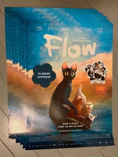Plakat filmu FLOW z autografem reżysera Gintsa Zilbalodisa