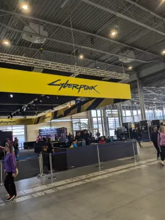 fot. naEKRANIE.plTuż obok Bethesdy rozstawił się CD Projekt RED z Cyberpunkiem 2077. Mam wrażenie, że ta gra to już niejako punkt obowiązkowy na mapie wszystkich imprez z branży gier, jakie odbywają się w Polsce od mniej więcej 2020 roku. I choć mogłoby się wydawać, że kto chciał Cyberpunka ograć, ten zrobił to na swoim domowym PC czy konsoli, to chętnych na wirtualną wizytę w Night City i zakup merchu nie brakowało.