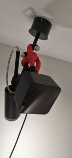 Zacznijmy od tego, że latarnie nie działają pasywnie, dlatego musimy zapewnić im zasilanie. Oznacza to, że do rozpoczęcia zabawy potrzebujemy aż trzech źródeł prądu umiejscowionych w konkretnych miejscach. Konia z rzędem tym, którzy mają w taki sposób rozmieszczone gniazdka w salonie, aby nie musieli rozciągać po podłodze przedłużaczy. Na tym jednak nie koniec niedogodności, gdyż latarnie powinny być umieszczone powyżej gogli, co najmniej na wysokości dwóch metrów. Być może jedną uda nam się postawić na szczycie regału z książkami, ale z drugą prawdopodobnie będziemy musieli nieco pokombinować i albo wyposażyć się w wysoki statyw, albo znaleźć jakiś sposób na nieinwazyjny montaż. Mi jedną latarnię udało mi się ustawić na szafie w przedpokoju, a drugą przytwierdziłem do reflektora na ścianie telewizyjnej za pośrednictwem elastycznego trójnogu. Mało estetyczne rozwiązanie, ale funkcjonalne. Z rozstawieniem dwumetrowego statywu dla latarni VR miałbym znacznie większy problem.