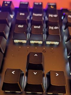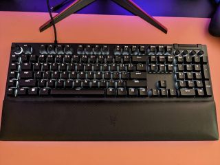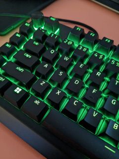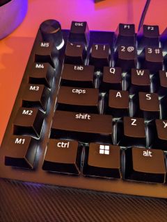 Pierwsze wrażenie po położeniu rąk na klawiaturze? Czuć, że obcuje się z czymś z wyższej półki cenowej. Plastik jest twardy i sprawia wrażenie wytrzymałego, co dobrze wróży na przyszłość – wszak wydając tyle pieniędzy, chcielibyśmy, by produkt służył nam przez długie lata. Producent obiecuje, że klawisze są wytrzymałe, a nadruki odporne na ścieranie, ale o tym będzie można przekonać się dopiero po wielu miesiącach użytkowania. Samo uczucie wciskania klawiszy jest natomiast bardzo przyjemne. Zastosowane w testowanym przeze mnie modelu przełączniki Razer Green mają dość wyraźny i głośny "klik", co z pewnością nie każdemu przypadnie do gustu. Nie jest to jednak dźwięk, który mógłby jakoś specjalnie przeszkadzać – chyba że gracie w całkowitej ciszy. Podejrzewam, że gorzej byłoby, gdybyście zamierzali korzystać z tej klawiatury do pisania dłuższych tekstów w miejscu, w którym przebywają inni domownicy, bo wtedy rytmiczne stukanie mogłoby doprowadzić ich do białej gorączki. Warto jednak zaznaczyć, że BlackWidow V4 Pro raczej nie będzie pierwszym wyborem dla osób, które zawodowo zajmują się przygotowywaniem treści, a w razie czego w sprzedaży dostępna jest również wersja z przełącznikami Razer Yellow. Te oferują nie tylko niższy skok (1,2mm vs 1,9mm w wariancie Green), ale są też cichsze.
