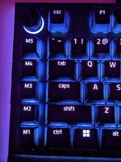 fot. naEKRANIE.plRazer BlackWidow V4 Pro oferuje pełen pakiet funkcji, których mogliby oczekiwać gracze. Absurdalnie wręcz wysoki polling rate (maksymalnie 8000hz) oznacza błyskawiczne reakcje peceta na naciskanie klawiszy, a dodatkowe przyciski można przypisać do dowolnych akcji. Ich umiejscowienie, przynajmniej w przypadku gier, jest bardzo dobrze przemyślane, bo bez problemu obsłużycie je małym palcem podczas trzymania lewej dłoni na klawiszach WSAD, które (zazwyczaj) używane są do kontrolowania postaci. Potencjalnych zastosowań jest mnóstwo: od przypisania do nich ataku wręcz czy rzucania granatem (w Call of Duty lub Destiny) po wybór umiejętności w World of Warcraft i zaznaczanie konkretnych oddziałów w strategiach czasu rzeczywistego. Niestety, o ile w grach takie rozmieszczenie dodatkowych przycisków sprawdzą się wyśmienicie, o tyle już podczas pisania może to nieco przeszkadzać. Nie jestem w stanie zliczyć, ile razy nacisnąłem któryś z nich omyłkowo, gdy błądziłem w tamtych okolicach w poszukiwaniu Shifta czy Capslocka.