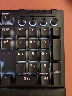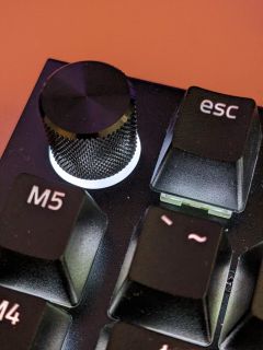 Kolejne trzy dodatkowe przyciski znalazły się na lewej stronie obudowy. Dostęp do nich jest trudniejszy, a więc trudno o ich przypadkowe naciśnięcie – może poza rzadkimi sytuacjami, gdy chcecie przemieścić klawiaturę na biurku. Oczywiście nie zabrakło też przycisków do obsługi multimediów – można dzięki nim zatrzymywać i wznawiać odtwarzanie, przełączać utwory, a znajdująca się nad nimi rolka umożliwia kontrolowanie głośności. Prawdziwą "gwiazdą" i czymś, co wyróżnia ten model na tle konkurencji, jest... pokrętło, które znajduje się u góry, po lewej stronie. Na papierze brzmi to jak coś naprawdę dziwacznego, ale w praktyce działa to bardzo dobrze i intuicyjnie. W domyślnych trybach można użyć go, by na przykład szybko i płynnie przemieszczać się pomiędzy kartami przeglądarki i uruchomionymi aplikacjami lub regulować jasność podświetlenia. Aktualnie działająca funkcja oznaczona jest kolorem, a zmiany "programu" dokonujemy w poprzez naciśnięcie pokrętła, dzięki czemu łatwo się do tego przyzwyczaić. Korzystając z aplikacji Razera, można pokusić się o pewne szaleństwa i wykorzystać ten nietypowy dodatek na różne inne, kreatywne sposoby – na przykład w grach czy przy obróbce grafiki lub wideo. Możliwości są niemal nieograniczone.