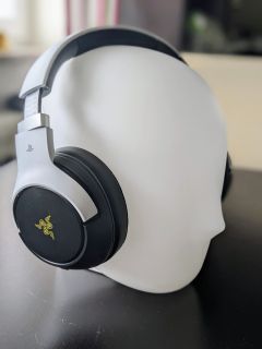 Same słuchawki wyglądają raczej niepozornie i na pierwszy rzut oka trudno zauważyć, że to coś ze stajni Razera. Produkty tej firmy kojarzą mi się przede wszystkim z bardzo wyraźnym designem, ciemnymi barwami z zielonymi akcentami i wszędobylskimi LED-ami. Tutaj zaś prawie nie ma po tym śladu. Zamiast tego postawiono na subtelną, czarno-białą kolorystykę, świetnie pasującą do wyglądu samego PS5. Dopiero po bliższym przyjrzeniu się dojrzymy niewielkie logo PlayStation oraz dwa podświetlane symbole Razera, po jednym na zewnętrznej części każdego z nauszników.