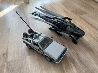 Diuna Franka Herberta przeżywa kolejną młodość dzięki ekranizacji Denisa Villeneuve'a. Obie części filmu okazały się globalnym sukcesem. Nie dziwi więc, że wiele firm stara się dzięki tej marce dostarczyć fanom jeszcze więcej radości. I tak LEGO wypuściło w ramach serii Icons, skierowanej bardziej do starszych odbiorców, ikoniczny statek Atreides Royal Ornithopter, który mogliśmy zobaczyć w produkcji Diuna: Część pierwsza z 2021 roku. Muszę przyznać, że ten zestaw prezentuje się bardzo dobrze. Miałem okazję go złożyć, co sprawiło mi wiele radości. I nie są to puste słowa. Ostatni raz miałem tyle funu podczas składania zestawu LEGO, gdy dostałem DeLoriana z Powrót do przyszłości. Zresztą postawiłem go obok „ważki”, byście zobaczyli, jak duża jest to konstrukcja.