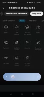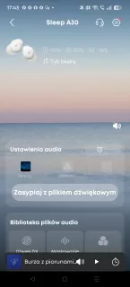 Funkcja ANC to kolejny krok naprzód, zapewniający redukcję hałasu nawet o 30 dB, skupiającą się na niskich częstotliwościach, takich jak odgłosy wentylatorów lub hałas uliczny. Funkcja ta łączy się z trybami Smart ANC: adaptacyjnym (automatyczna regulacja), podróżnym i wewnętrznym (dla domu). Biblioteka aplikacji zawiera ponad 200 dźwięków, w tym AI Brainwave Audio do synchronizacji fal mózgowych z wzorcami theta, kolorowe szumy (biały, brązowy, zielony – do wyboru, do koloru) oraz dźwięki z natury/medytacyjne. Możesz nakładać na siebie maksymalnie trzy dźwięki za pomocą niestandardowych suwaków głośności, a funkcje takie jak przypomnienia o śnie, delikatne alarmy i śledzenie snu (za pomocą czujników ruchu) zapewniają dużą funkcjonalność.