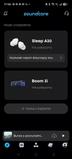 Prawdziwa magia modelu A30 tkwi w jego mózgu, zasilanym przez aplikację Soundcore (dostępną na iOS i Androida). To nie jest tylko biblioteka dźwięków – to ekosystem snu. Wyróżnia się funkcją Adaptive Snore Masking: mikrofon w etui słuchawek wychwytuje chrapanie w promieniu 1,5 metra, analizuje jego częstotliwość i głośność, a następnie emituje dostosowane dźwięki maskujące (takie jak różowy szum lub fale oceanu), aby je zagłuszyć.