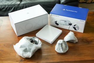 Sprzęt dotarł już do naszej redakcji! Możemy mu się bliżej przyjrzeć i porównać do poprzedniej wersji, czyli PS VR. Zabieramy się zatem do unboxingu i sprawdzenia, co dostaliśmy w pakiecie startowym. W pudełku znajdują się gogle, dwa kontrolery, kabel zasilający do kontrolerów i słuchawki douszne (z kilkoma silikonowymi nakładkami). Sam sprzęt jest dużo lżejszy i poręczniejszy niż poprzednia wersja do PlayStation 4. Ma też mniej kabli.