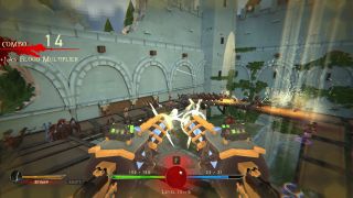 Pomysł na rozgrywkę jest banalny. W standardowym trybie kierowany przez nas bohater idzie do przodu, a z naprzeciwka nadchodzą kolejne, coraz silniejsze, fale wrogów. Do ich eliminowania używamy broni – początkowo tylko jednej, ale im dalej dochodzimy, tym więcej narzędzi zagłady trafia w nasze ręce (i nie tylko). Z czasem dochodzi to do granic absurdu, a wręcz je przekracza, bo już po kilku minutach nasz protagonista będzie miał przy sobie kilka karabinów, strzelb, miotaczy ognia czy magicznych zaklęć. Łącznie możemy mieć przy sobie aż 14 sztuk wyposażenia.