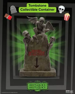 Najwięksi fani Tima Burtona z pewnością będą zachwyceni tym, co przygotowała dla nich amerykańska sieć kin Regal. To właśnie tam pojawią się niezwykle klimatyczne pudełka na popcorn. Niewykluczone, że na podobną akcję zdecydują się również polskie kina. Pierwsze z pudełek przypomina nagrobek dobrze znany widzom z pierwszej części serii, a dokładnie sceny, w której po raz pierwszy zobaczyli miniaturowe miasteczko znajdujące się na strychu rodziny Deetzów.
