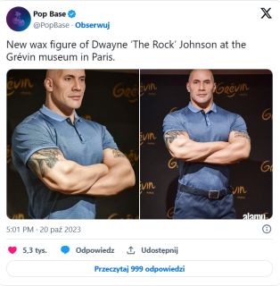 Dwayne Johnson (Fast X, Wyprawa do dżungli, Jumanji: Przygoda w dżungli, Black Adam), również znany jako The Rock, jest obecnie jednym z najbardziej lubianych gwiazdorów w Hollywood. Fani chętnie obserwują go w mediach społecznościowych, a jego profil na Instagramie aktualnie śledzi ponad 391 milionów obserwatorów. Dwayne Johnson przez wielu internautów jest ceniony zarówno za swój talent do aktorstwa i wrestlingu, jak i to, że jest kochającym ojcem i chętnie pomaga ludziom w potrzebie. Jedno z muzeów we Francji postanowiło stworzyć figurę woskową Dwayne'a Johnsona, z którą jego fani od niedawna mogą robić sobie zdjęcia. Okazuje się, że figura nie przypadła wszystkim do gustu.