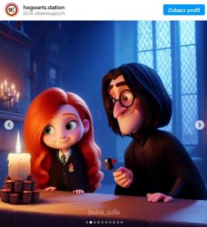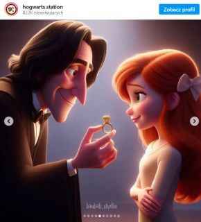 Dzięki pomysłowi internauty znanego na Instagramie pod nazwą @baobab707, fani wątku Snape'a i Lily mogą przekonać się, jak mógłby wyglądać ich związek. Internauta poprosił sztuczną inteligencję, aby stworzyła 10 ilustracji z udziałem bohaterów w stylu animacji Pixara. Kilka z nich przedstawiają również, jak Snape zareagowałby na odejście Lily do Jamesa.