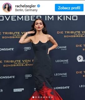 Film Igrzyska śmierci: ballada ptaków i węży w Polsce trafi na duży ekran w piątek 17 listopada 2023 roku. Produkcja jest prequelem serii Igrzyska śmierci, która - podobnie jak wcześniejsze filmy - powstała na podstawie powieści autorstwa Suzanne Collins o tym samym tytule. Akcja filmu Igrzyska śmierci: ballada ptaków i węży rozgrywa się podczas Dziesiątych Głodowych Igrzysk. 17-letni Coriolanus Snow (Tom Blyth) postanawia wówczas zostać mentorem ich uczestników, aby zdobyć sławę. Jedną z osób, która bierze udział w tytułowych igrzyskach, jest pochodząca z najbiedniejszego Dystryktu Dwunastego Lucy Gray Baird. W bohaterkę wciela się Rachel Zegler. Aktorka pojawiła się na premierze filmu, gdzie zaprezentowała się na czerwonym dywanie w kreacji inspirowanej sukienką Katniss Everdeen, czyli głównej bohaterki serii Igrzyska śmierci, w którą wciela się Jennifer Lawrence.