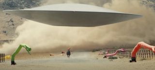Wielki latający spodek, który można zobaczyć na zwiastunie, w rzeczywistości okazał się nie pojazdem, a zwierzęciem, które otwierając usta, wciągało konie i ludzi, niczym smaczną przekąskę.