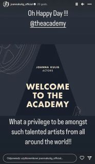 Aby oficjalnie dołączyć do Amerykańskiej Akademii Sztuki i Wiedzy Filmowej, wszystkie zaproszone osoby muszą przyjąć zaproszenie. Joanna Kulig poinformowała na swoim Instastory, że już to zrobiła:
